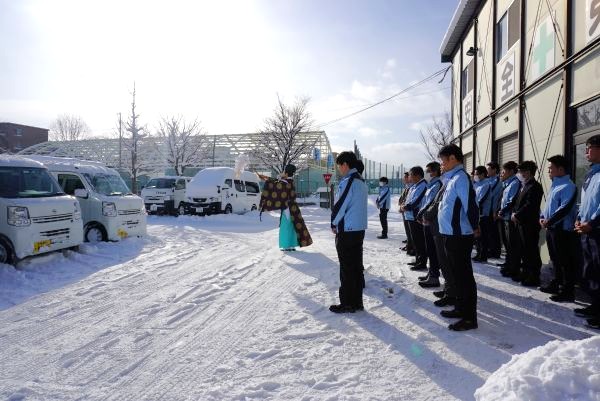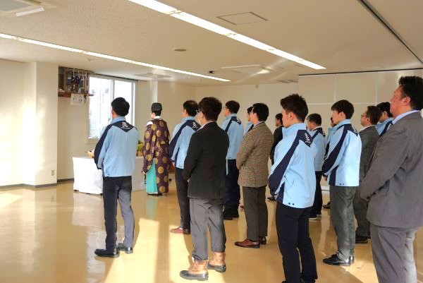 毎年「社業繁栄・工事並びに車両無事故」を祈願して行っている「安全祈願式」。